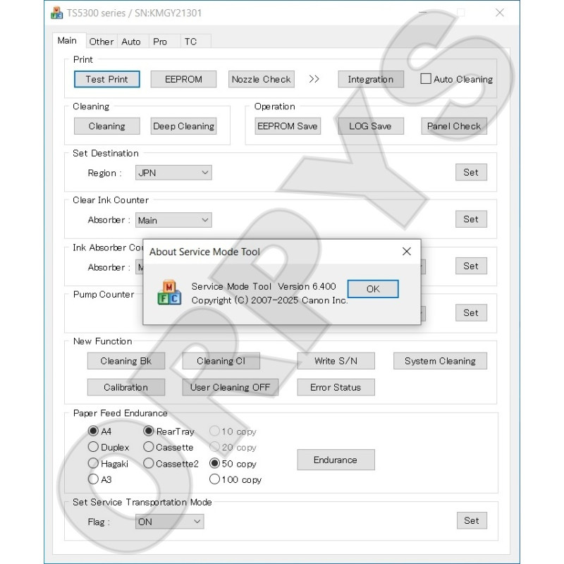 Canon Service Mode Tool Version 6.400 — is a original utility program for printers Canon, the program allows you to reset the absorber counter (reset error 5B00, 5B02) and other functions